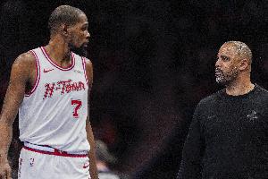 谈到杜兰特对于年轻球员的帮助,乌度卡表示:“他来到这里以来所做的一切,已经对我们团队产生了积极影响。他用他的竞争心、对细节的关注、日复一日的职业道德以及对比赛意义的理解,提升了整支球队,他所拥有的所有这些经验,我们很多球员是第一次打季后赛,这显然只会对我们有益。”
