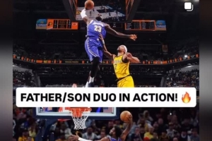 赛后詹姆斯更新了个人社媒,晒出自己和布朗尼同场扣篮帅照。配文写道:“上阵父子兵!?”