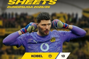 体育资讯4月6日讯 多特门将科贝尔本赛季联赛完成13场零封,德甲门将零封场次最多。