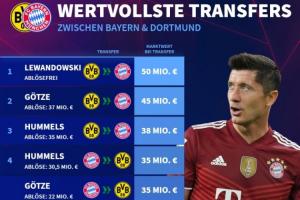 拜仁多特相互转会时球员身价榜: