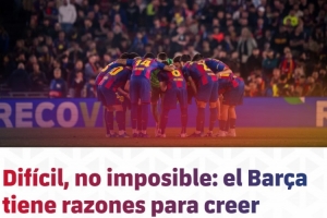 体育资讯4月9日讯 欧冠1/4决赛首回合比赛,巴萨主场0-2不敌马竞。巴萨官网发表了一篇文章,认为球队想要逆转并非不可能,红蓝军团仍有理由相信晋级欧冠半决赛。