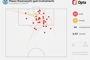 格林伍德加盟马赛以来出战76场比赛,参与62粒进球。